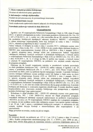 - Instrukcja obsługi zawierające ogólne zasady obsługi urządzenia wraz przeprowadzeniem procesu ozonowania,