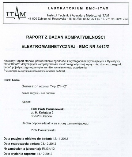 Kupując inna maszynę zapytaj się czy mają takie badania ( miej pewność ze ozonator działa i zabija bakterie i wirusy)
