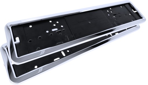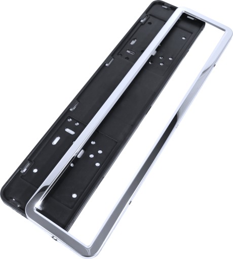 - Uniwersalna ramka na tablicę rejestracyjną. Składa się z dwóch części - czarnego spodu oraz metalowego przodu wykonanego ze stali nierdzewnej,