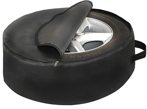 Pokrowiec na koło zapasowe/dojazdowe wykonany z mocnego materiału. Posiada praktyczny uchwyt do przenoszenia oraz dwa rzepy minimalizujące przemieszczanie się koła w samochodzie. Wszyty zamek ułatwia włożenie koła w pokrowiec.