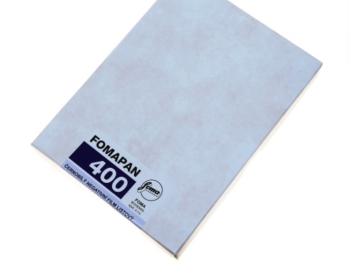 Oferujemy: Foma Fomapan 400 4x5" (10,2x12,7cm) 25 sztuk, błona cięta, film, klisza do aparatu do dużego formatu data: październik 2024 r.