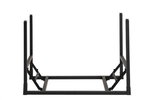 - Cechy stelaża: mocne spawy, wytrzymały i stabilny, możliwość składania za pomocą specjalnego systemu sprężynowego dzięki czemu nogi składane są pod blat