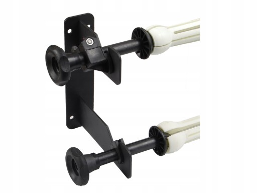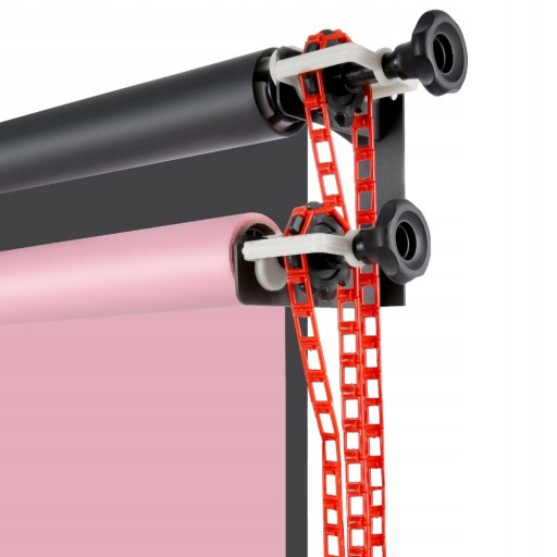 Śrubami można regulować siłę docisku, która zapobiega samodzielnemu odwijaniu się teł. Na tym zestawie zamocujesz tła o dowolnej długości (składa się z dwóch oddzielnie montowanych części).