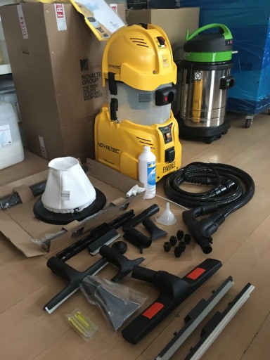 Profesjonalny generator pary ze zintegrowanym odkurzaczem płynnym, który rozpuszcza wszelkiego rodzaju smar i brud, usuwając wszystko jednocześnie, pozostawiając powierzchnie czyste, zdezynfekowane i idealnie suche.