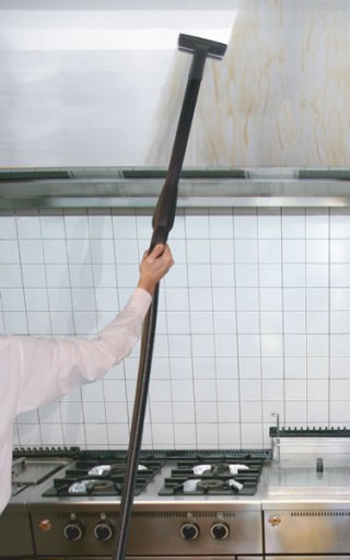 Ten kompaktowy i solidny odkurzacz parowy, dzięki parze o temperaturze 160°C, jest niezbędny do czyszczenia okapów kuchennych i kanałów wentylacyjnych, mycia i suszenia szkła i płytek oraz do wyeliminowania użycia drabin i szmat, i dezynfekuje zgodnie z przepisami HACCP.