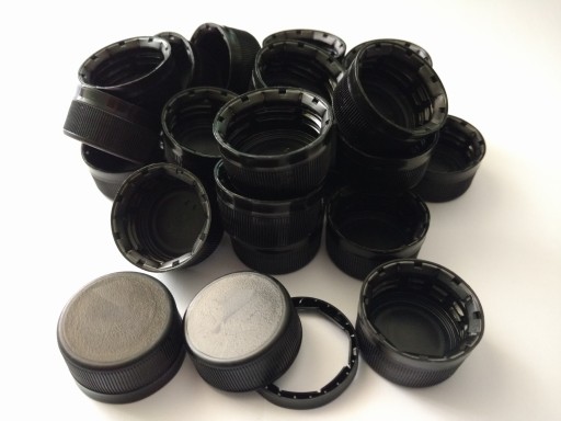 Pojemniki są w kolorze ciemno zielonym (ale transparentne) , zakrętki natomiast są czarne.