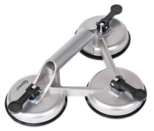 Wysokiej jakości potrójna przyssawka renomowanej marki GEKO przeznaczona do przenoszenie elementów o płaskiej i gładkiej powierzchni takich jak np. szyby, okna, szyby samochodowe, arkusze blach, laminaty itp., których waga nie przekracza 135kg.