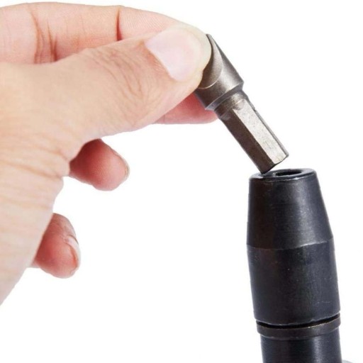 - Aby odkręcić nakrętkę lub śrubę sześciokątną zdejmij z wkrętaka przełączkę do bitów i zamontuj nasadkę z gniazdem 1/2 cala.