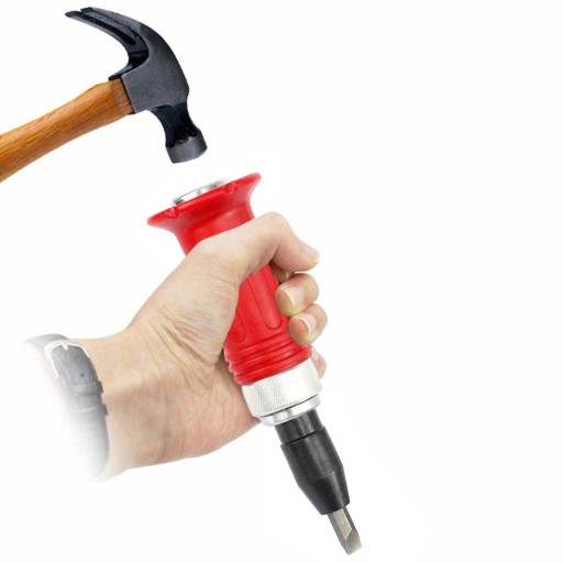 Wkrętak udarowy do podbijania z osłoną przekładający energię kinetyczną wytworzoną podczas uderzenia np. młotkiem na ruch obrotowy głowicy.