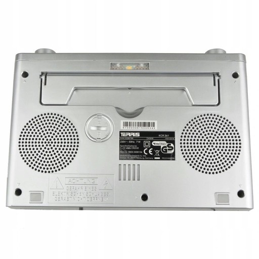 W dolnej części radia zamontowano głośniki, składane nóżki, gniazdo baterii do podtrzymania pamięci urządzenia oraz diodę do podświetlania przestrzeni pod szafką.