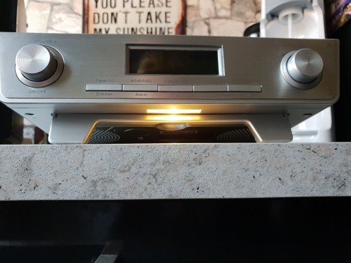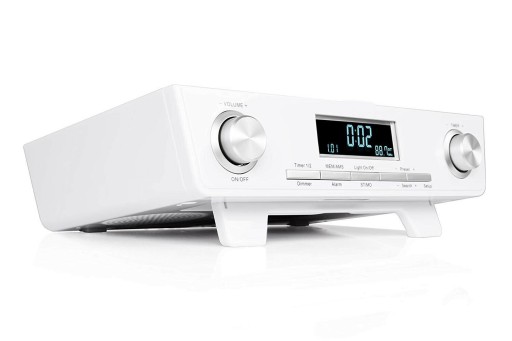 Sterowanie urządzeniem odbywa się przy użyciu dwóch wygodnych pokręteł i pięciu przycisków funkcyjnych. W dolnej części radia, znajduje się załączana przyciskiem dioda do oświetlania przestrzeni pod radiem, co może być bardzo pomocne w kuchni.