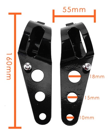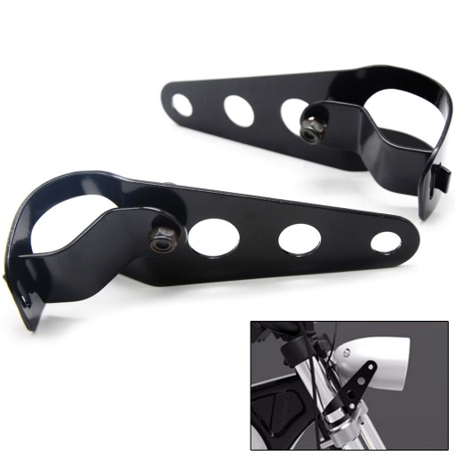 Czarne stalowe uchwyty montażowe to uniwersalne uchwyty do zamontowania halogenów, lamp LED, reflektorów montowanych z boku, owiewek, kierunkowskazów oraz wielu innych.