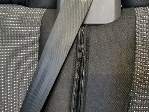 W PODWÓJNYM OPARCIU WSZYTY SUWAK KTÓRY UMOŻLIWIA ZAŁOŻENIE POKROWCA BEZ ODKRĘCANIA PASA BEZPIECZEŃSTWA.