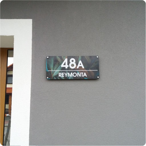 Tabliczka adresowa, z numerem domu, wykonana z wytrzymałego materiału typu dibond, który składa się z zewnętrznych warstw aluminium i kompozytowego wkładu. Nadruk nanosimy w technologii UV - najtrwalszej metodzie druku, która sprawia, że adres wygląda jak nowy przez wiele lat.