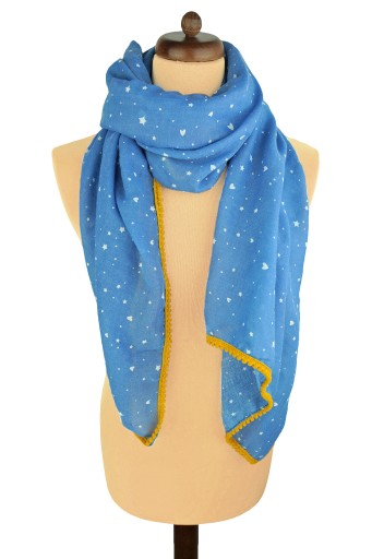 ШАРФ ЖЕНСКИЙ СИНИЙ ДЖИНСОВЫЙ С ЖЕЛТОЙ ХРУСТИКОЙ