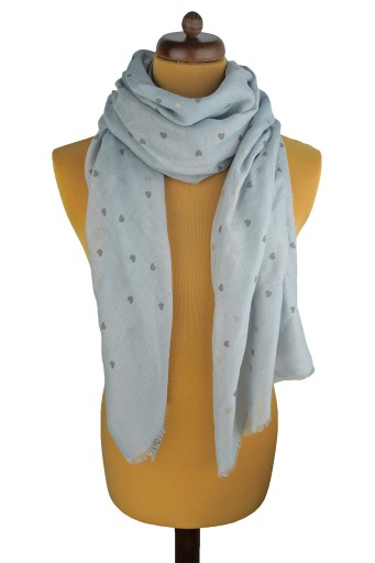 ЖЕНСКИЙ ТОНКИЙ СЕРЫЙ ШАРФ С МАЛЕНЬКИМИ СЕРДЕЧКАМИ