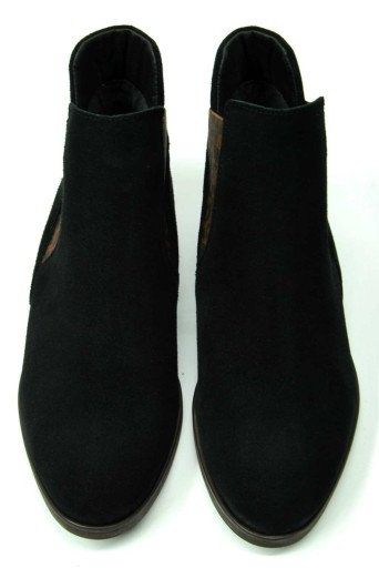 Sztyblety wykonane są w całości z naturalnej skóry zamszowej w czarnym kolorze z wkładką skórzaną, dzięki czemu są przyjazne dla stopy, wyściółka wewnątrz buta to tkanina dzianinowa .