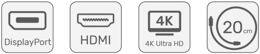- Pozostałe parametry: - Wspiera obsługę rozdzielczości 4K- Zgodny ze standardem DP 1.2 oraz HDMI 1.4- Chipset: ASM 1153E