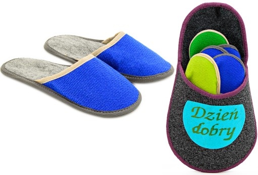Kapcie dla gości w wyjątkowo bogatej kolorystyce. Przydają się w każdym domu, do którego chętnie zaglądają znajomi i rodzina.