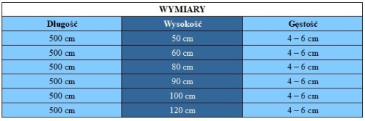 Dostępne poniżej wymiary ogrodzenia znajdą Państwo na naszych