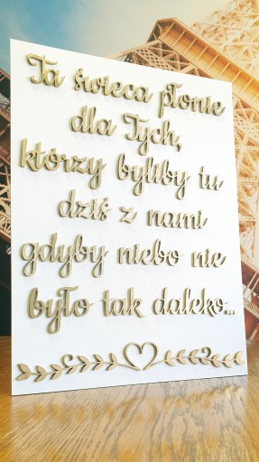 Wymiar tablicy to 40x30cm, napisy są wykonane ze sklejki.