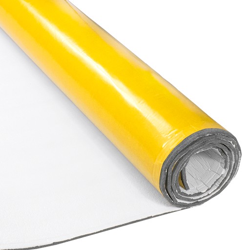 Pianka poliuretanowa, wyciszająca, samoprzylepna z warstwą folii, która jest odporna na oleje, benzynę oraz wodę. Atestowana izolacyjność akustyczna przez niezależne laboratorium i przetestowana przez nas pod kątem palności oraz pochłaniania hałasu.