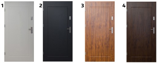 - Zewnętrzna powłoka drzwi z blachy głeboko-tłoczonej
