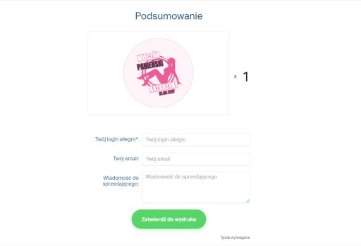 Pamiętaj aby na aukcji dokonać zakupu takiej samej ilości przypinek jaka została przygotowana w kreatorze.