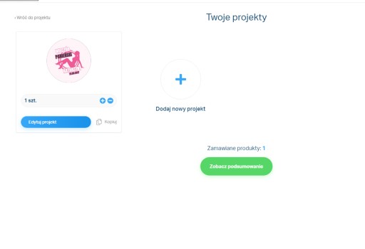 Możesz również stworzyć kolejne projekty w ramach jednego zamówienia klikając "DODAJ NOWY PROJEKT", a jeśli masz już gotowy kliknij "ZOBACZ PODSUMOWANIE"