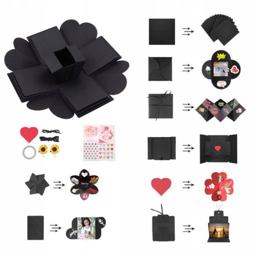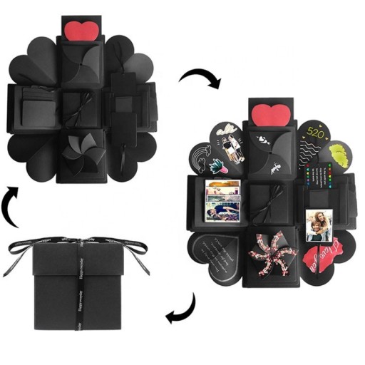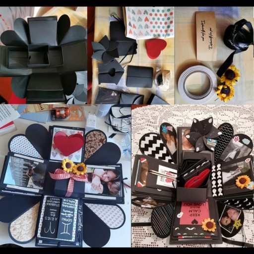 ✔️ To jest pudełko, które posiada 16 miejsc na zdjęcia. Możesz przykleić zdjęcia również na bokach ścianki jeżeli chcesz przykleić ich więcej. W środku znajduje się małe pudełko upominkowe, możesz włożyć tam jakąś małą rzecz - pierścionek, zegarek lub słodycze.