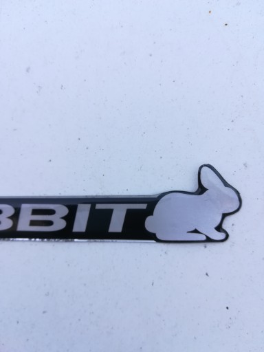 Sprzedam gumową naklejkę Rabbit z tylnego pasa Golfa 3.