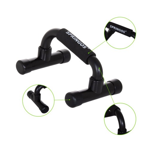 Uchwyty do pompek marki Springos® to akcesoria do ćwiczeń, dzięki którym można urozmaicić swoje treningi, tak aby stały się jeszcze bardziej efektywniejsze. Z ich pomocą angażujemy do pracy jeszcze większą ilość mięśni oraz poprawiamy wytrzymałość fizyczną organizmu. Użytkowanie uchwytów zapobiega poślizgowi dłoni podczas ćwiczeń oraz chroni ręce przed przeciążeniami.
