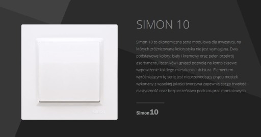 - Kompatybilność serii: Produkty z serii Simon 10 są kompatybilne wyłącznie z innymi elementami tej samej serii.