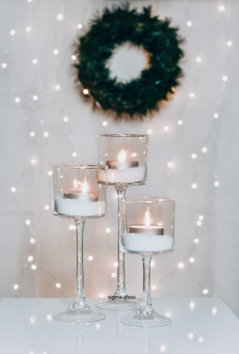 SZKLANY ŚWIECZNIK NA NÓŻCE 45 cm