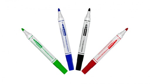 - czterech markerów suchościeralnych (zielony, niebieski, czerwony, czarny),