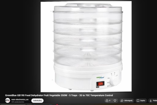 - Suszarka do grzybów, warzyw i owoców GreenBlue GB190 Moc 250W