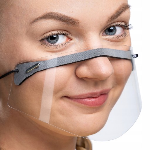 - zabezpiecza lepiej od maseczek chirurgicznych - jest zrobiona z tego samego materiału co przyłbica,