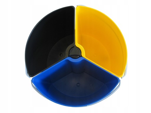 - Kolor: Niebieski - PAPIER, Zielony - SZKŁO, Żółty - PLASTIK;