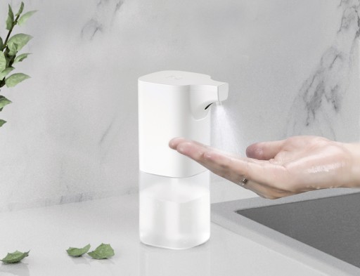 Automatyczny czujnik pozwala na dozowanie płynu bez konieczności dotykania podajnika – wystarczy podłożyć dłonie pod dyszę w odpowiedniej odległości.