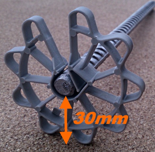 Za pomocą naszej podkładki otrzymuje się dystans 30 mm pomiędzy prętem a