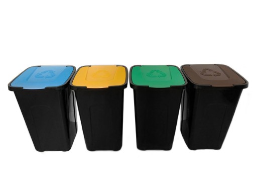 - Kolor: Brązowy - BIO, Niebieski - PAPIER, Zielony - SZKŁO, Żółty - PLASTIK;