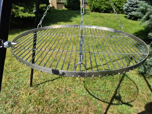 Zestaw to trójnóg składany z rusztem z stali nierdzewnej o średnicy 70 cm oraz palenisko fi 70 cm z blachy 4 mm .