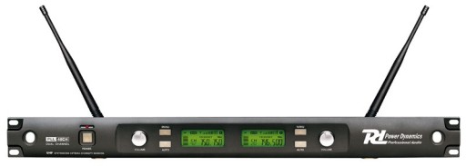 2x48 kanałowy odbiornik pracujący na paśmie UHF z anteną, syntezatorem PLL, wyświetlaczem LCD, podwójnym obwodem blokady szumów, funkcją automatycznego wyszukiwania itp. Doskonała jakość dźwięku i niezawodność.