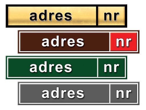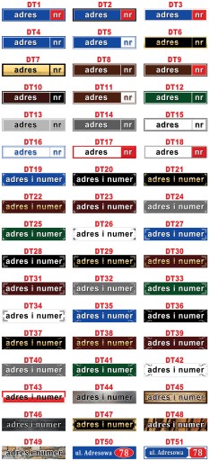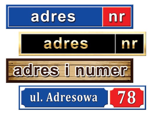 GOTOWE WZORY TABLICZEK ADRESOWYCH 50x10 cm, DRUKOWANYCH NA BIAŁYM DIBONDZIE 2mm.