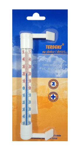 Termometr zewnętrzny zaokienny, przeznaczony zarówno do okien drewnianych, jak i plastikowych, łatwy w montażu za pomocą taśmy klejącej, bez wiercenia. Wysokość termometru: 19,5 cm.Dostępny w kolorze białym i brązowym.