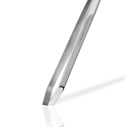 Profesjonalna pęseta do brwi Sterling w kolorze srebrnym, wykonana jest z polerowanej nierdzewnej stali chirurgicznej o wykończeniu błyszczącym. Ręcznie szlifowane skośne krawędzie zapewniają precyzyjną i komfortową pracę.