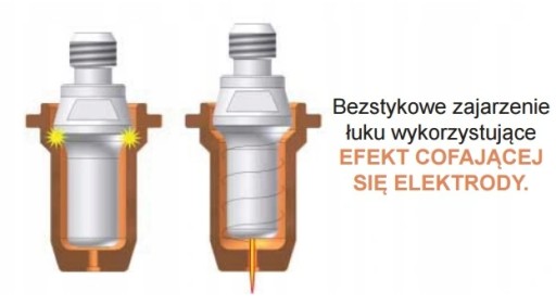 Wbudowany system bezstykowej inicjacji łuku pilotażowego (bez wysokiej częstotliwości HF) – zapewnia doskonałą jakość cięcia, przy wydłużonej żywotności części eksploatacyjnych.