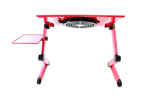 Aluminiowy, regulowany stolik pod laptopa z funkcją chłodzenia. Charakteryzuje się lekką i solidną konstrukcją. Umożliwia komfortowe korzystanie z notebook'a nawet w pozycji leżącej. Pełna regulacja nachylenia blatu oraz nóżek, zapewnia dostosowanie stolika do potrzeby użytkownika. Funkcję chłodzącą zapewnia cichy wentylator zasilany z portu USB. Stolik wyposażony w dodatkową półkę na mysz. To niezwykle ergonomiczne rozwiązanie zwiększające wygodę korzystania z laptopa!
