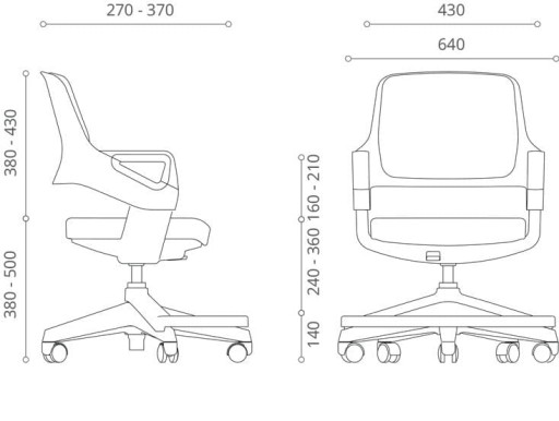 - Regulacja wysokości siedziska: 38 cm - 50 cm od podłogi lub 24 - 36 cm od podstawki pod stopy.