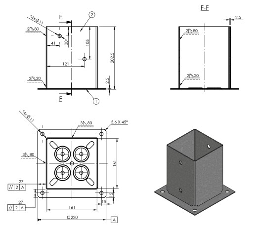 ОСНОВАНИЕ ПРЯМОУГОЛЬНОЙ СТОЙКИ PSP 160 НА ВИНТАХ